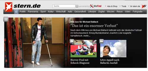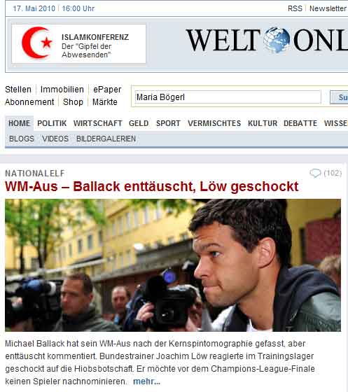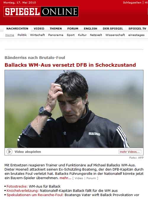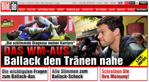 ZDF findet die News so wichtig, daß heute Abend, 19:20 Uhr ein ZDF spezial „WM-Aus für Ballack“ gesendet wird, nachdem diese Meldung bereits in jeder „heute“-Sendung behandelt wurde